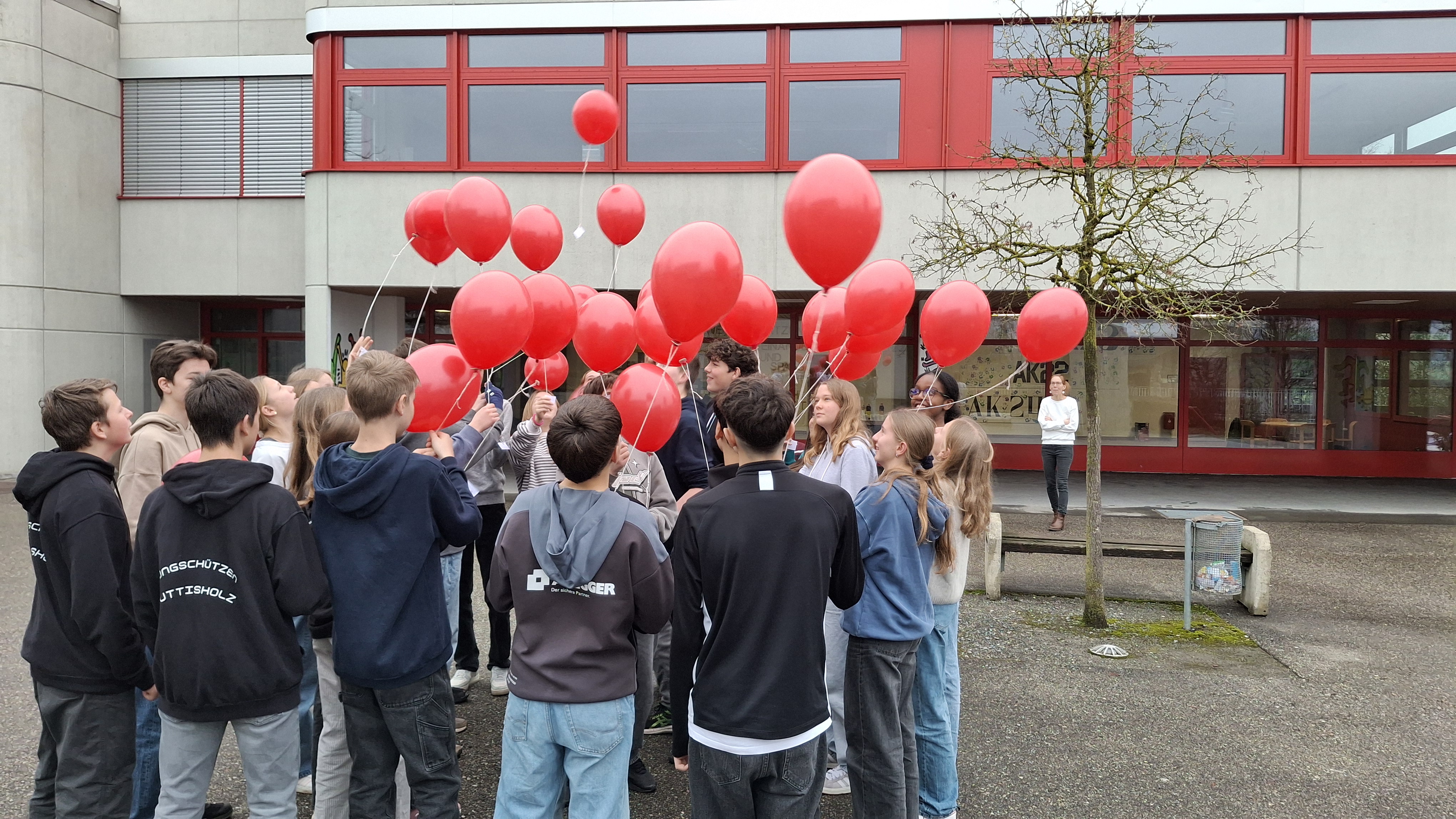 Die SuS erfuhren an diesem Tag über den Islam, Buddhismus und das Judentum viele Informationen. Es waren sogar zwei jüdische Jugendliche vor Ort und erzählten aus ihrem Alltag. Nachmittags machten sich die SuS in Gruppengesprächen Gedanken über Lebensweisheiten. Anschliessend liessen sie mit Luftballons gute Wünsche für die Welt in die Luft. Am Schluss genossen alle Beteiligten noch einen feinen, selbstgemachten Apéro.