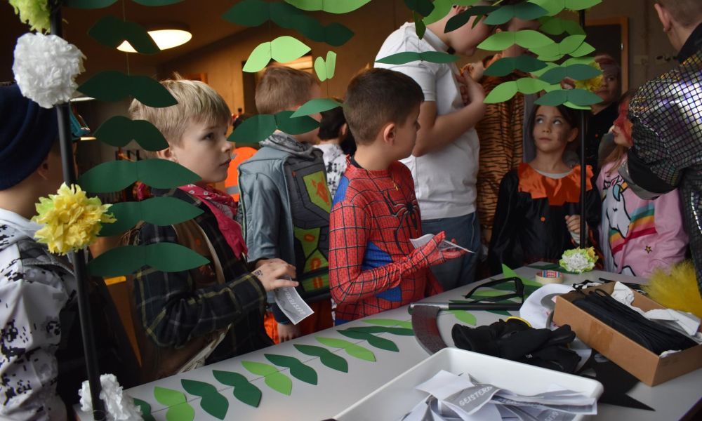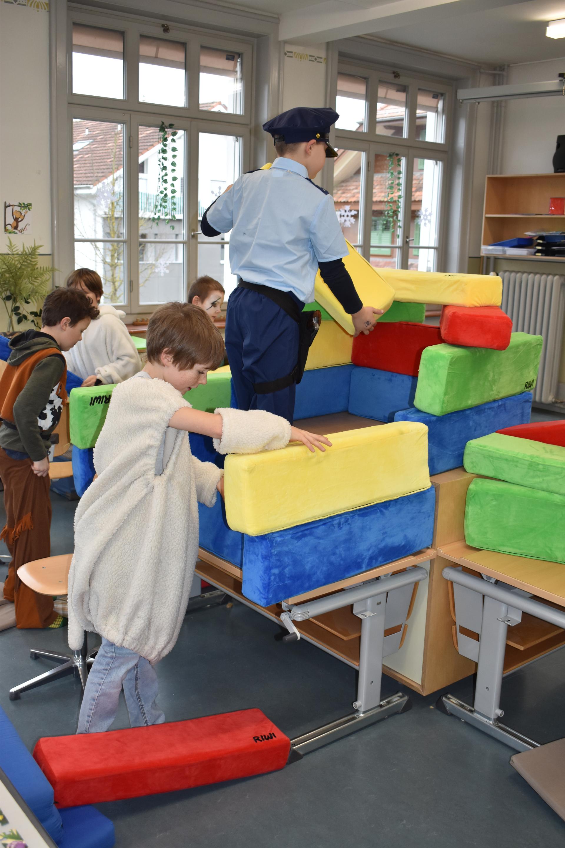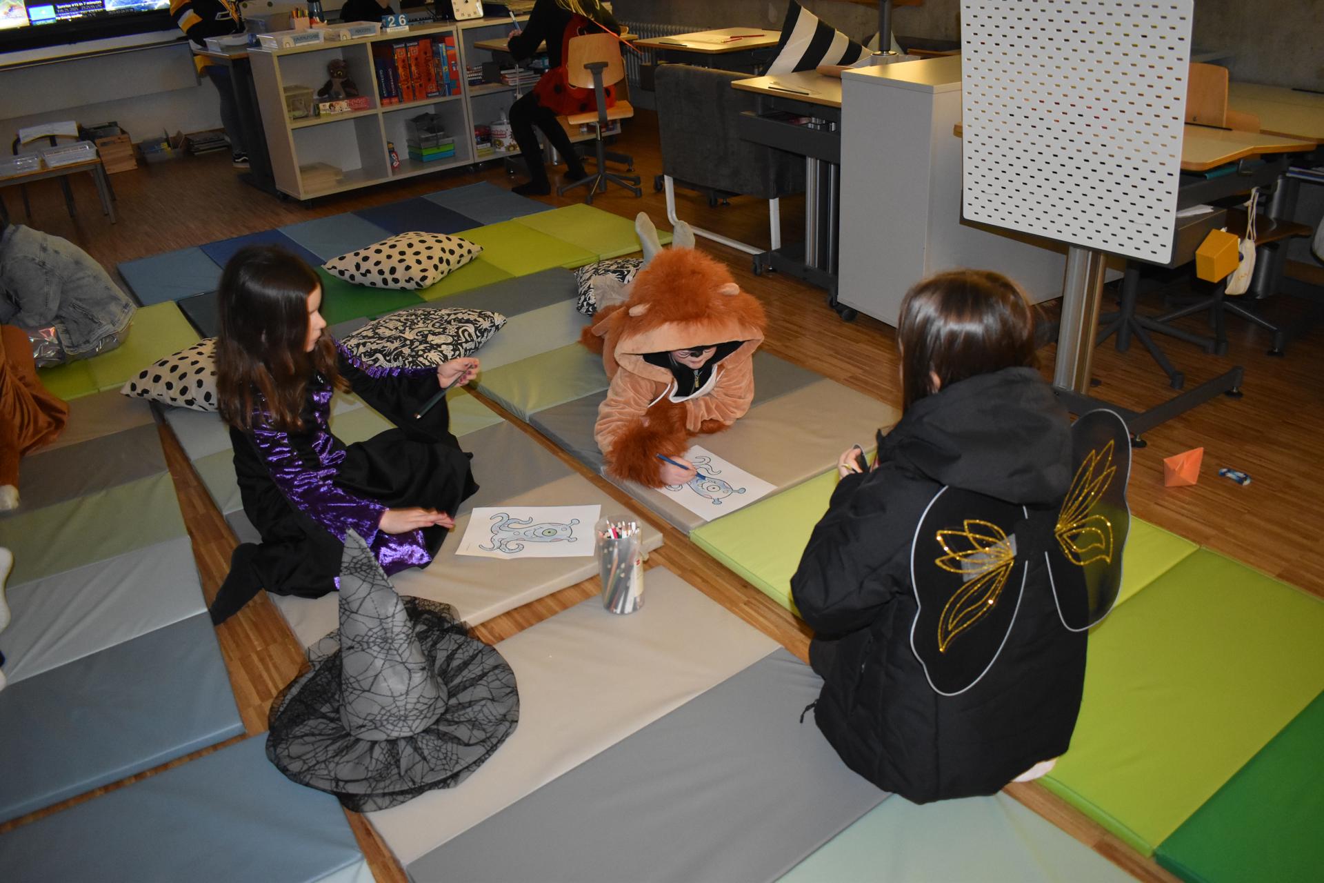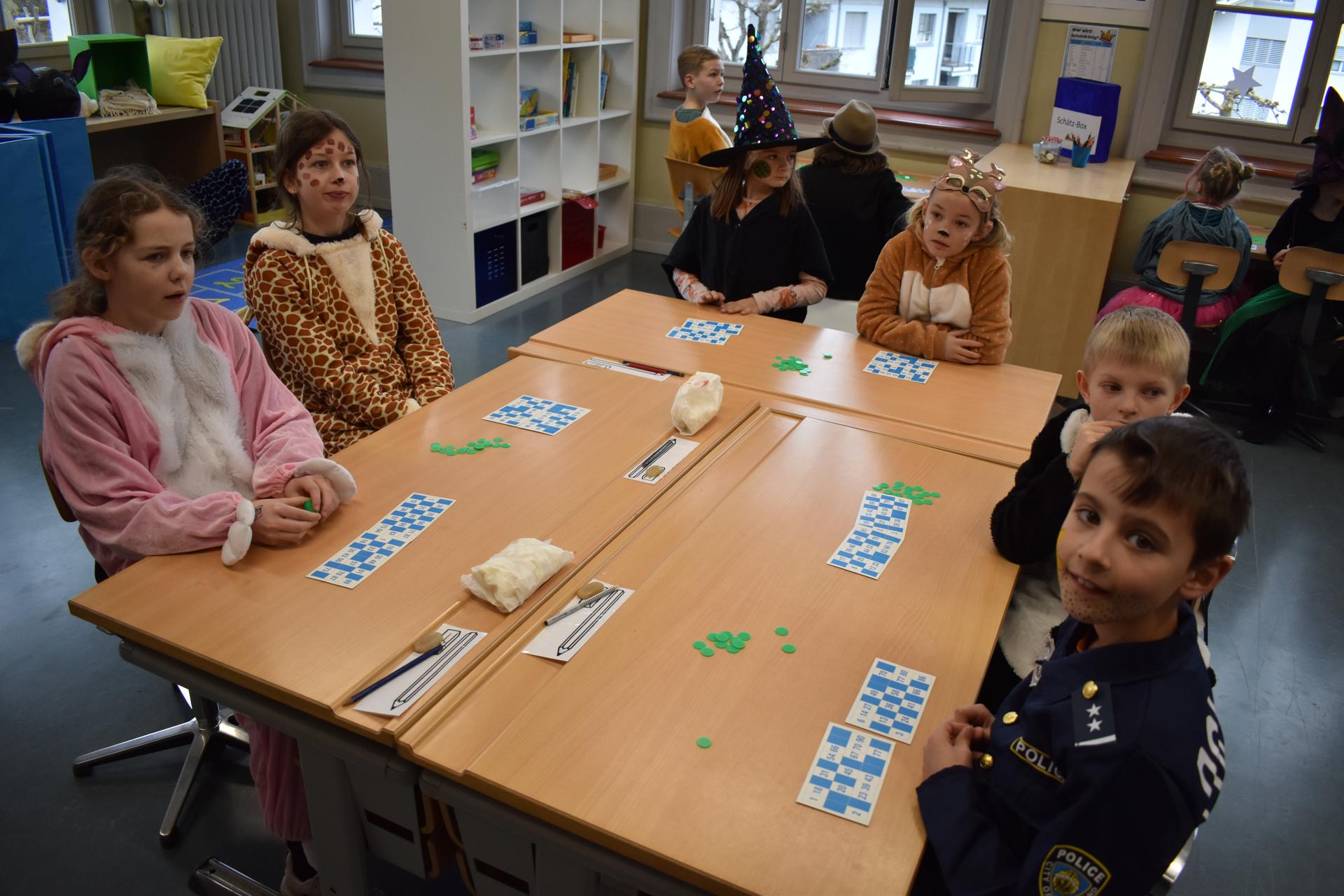 Die Kinder tanzten in der Disco, genossen etwas Leckeres aus dem vielseitigen Znüniangebot, spielten Lotto, bauten hohe Türme und bastelten bunte Masken. Brauchten sie eine kurze Pause vom närrischen Treiben, konnten sie sich im Weltallzimmer ausruhen, bevor sie sich in weitere Abenteuer stürzten: Während des Spiels Twister stellten die Schüler:innen ihre Beweglichkeit unter Beweis, beim Rätseln die Gehirnzellen und für den Besuch der Geisterbahn nahmen einige ganz bestimmt ihren ganzen Mut zusammen.