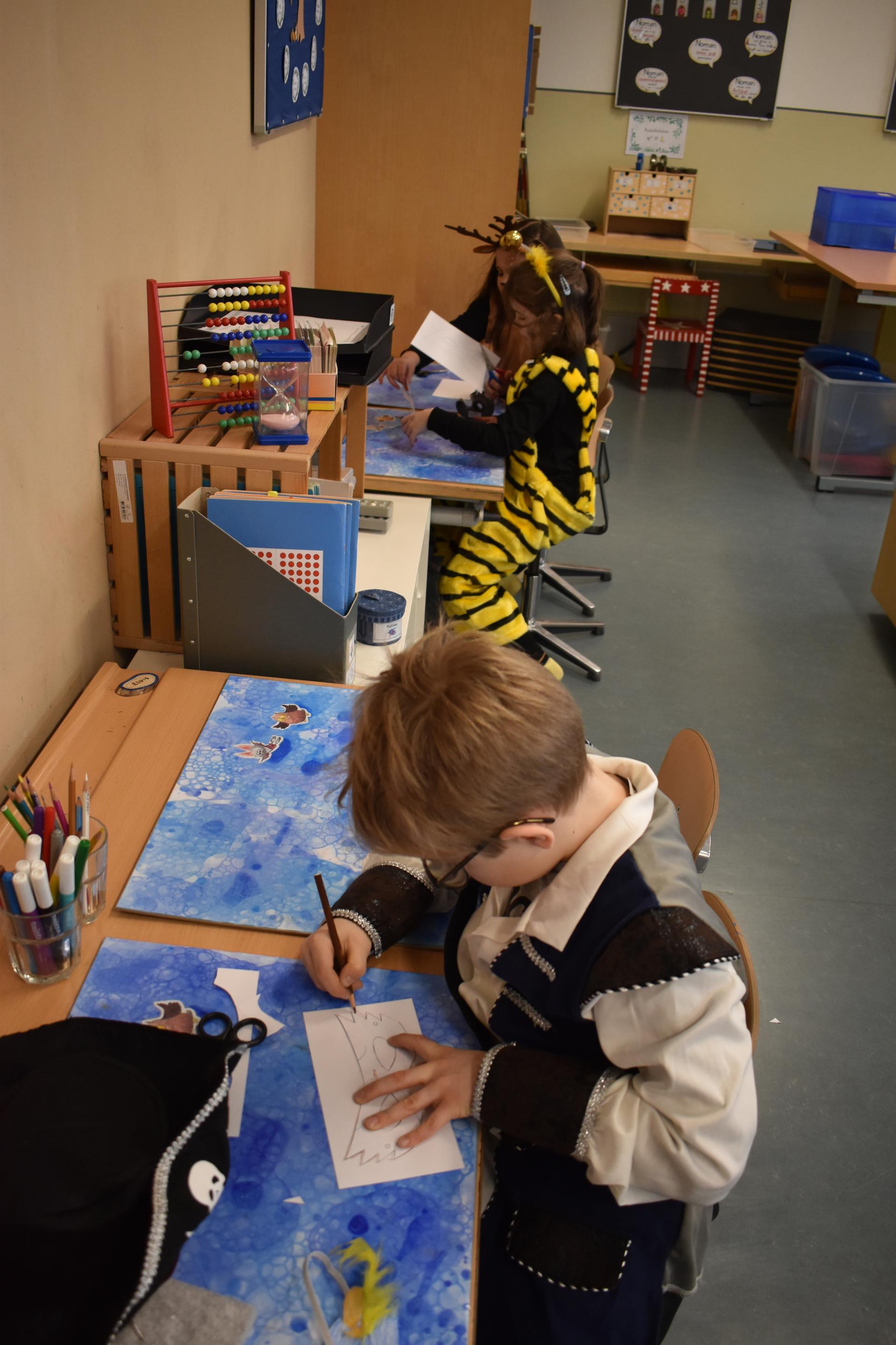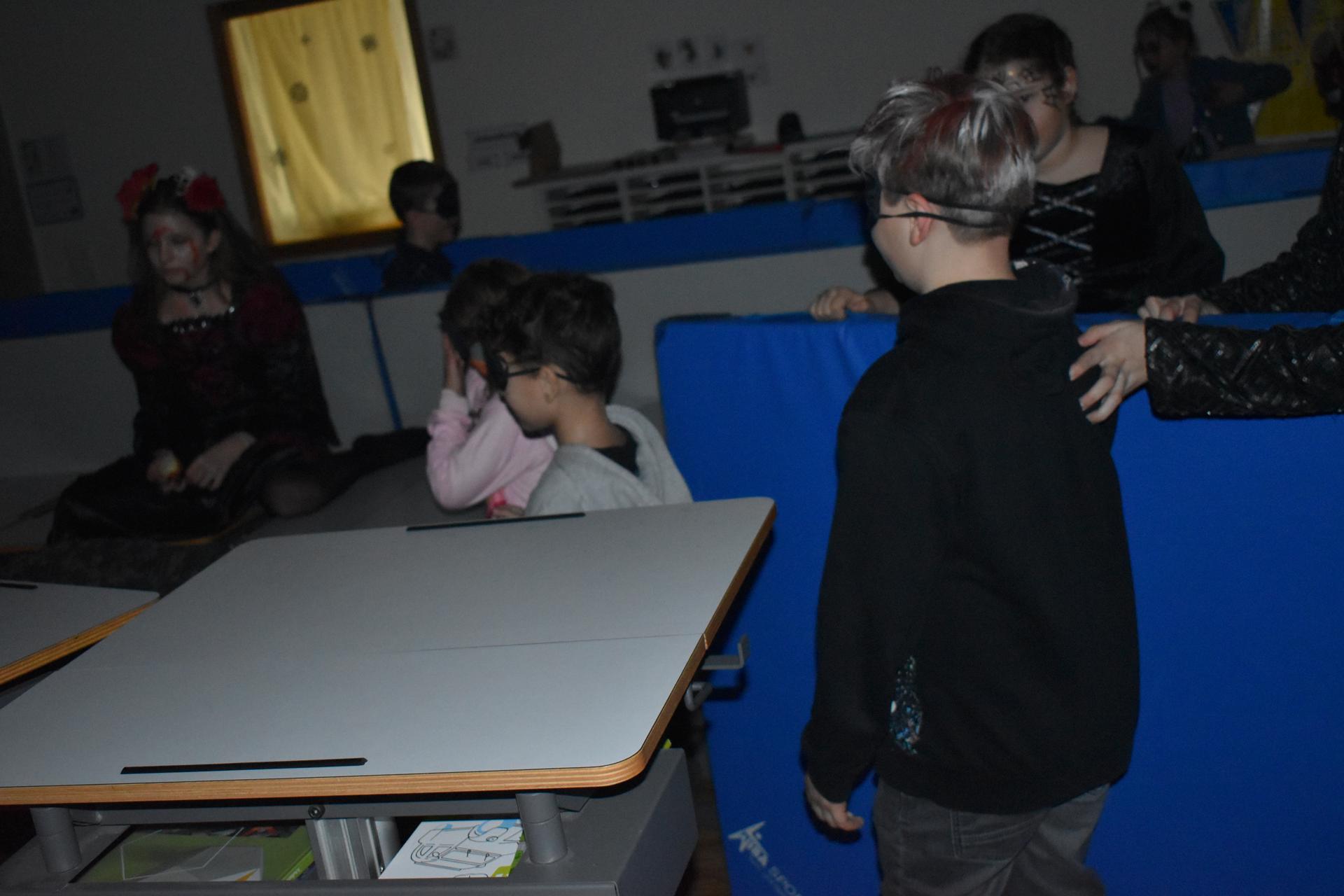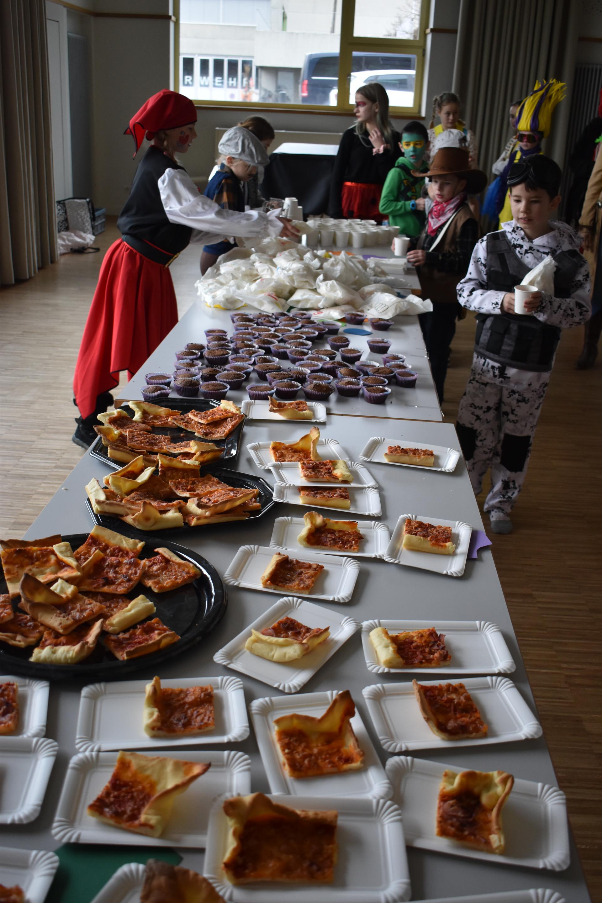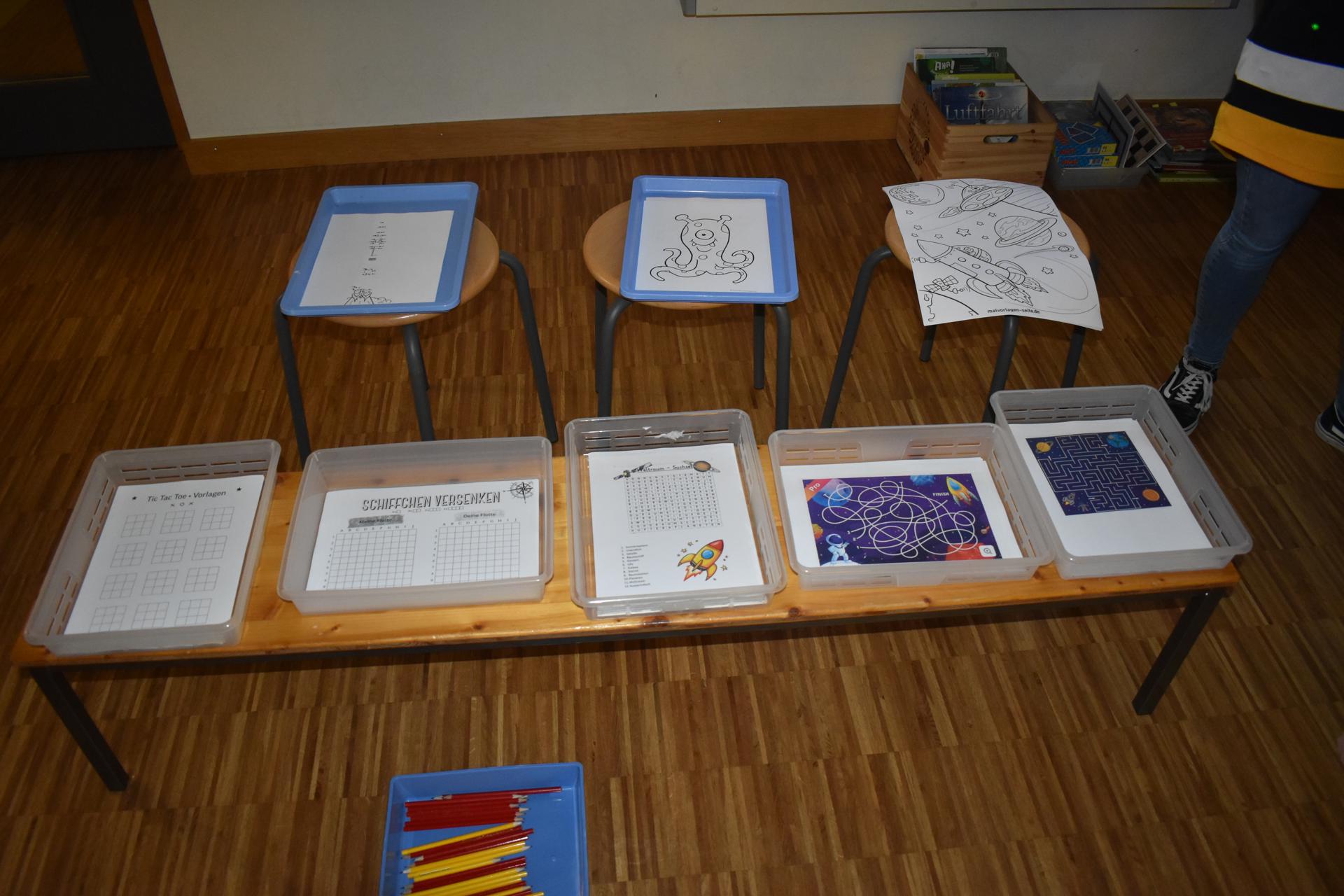 Die Kinder tanzten in der Disco, genossen etwas Leckeres aus dem vielseitigen Znüniangebot, spielten Lotto, bauten hohe Türme und bastelten bunte Masken. Brauchten sie eine kurze Pause vom närrischen Treiben, konnten sie sich im Weltallzimmer ausruhen, bevor sie sich in weitere Abenteuer stürzten: Während des Spiels Twister stellten die Schüler:innen ihre Beweglichkeit unter Beweis, beim Rätseln die Gehirnzellen und für den Besuch der Geisterbahn nahmen einige ganz bestimmt ihren ganzen Mut zusammen.