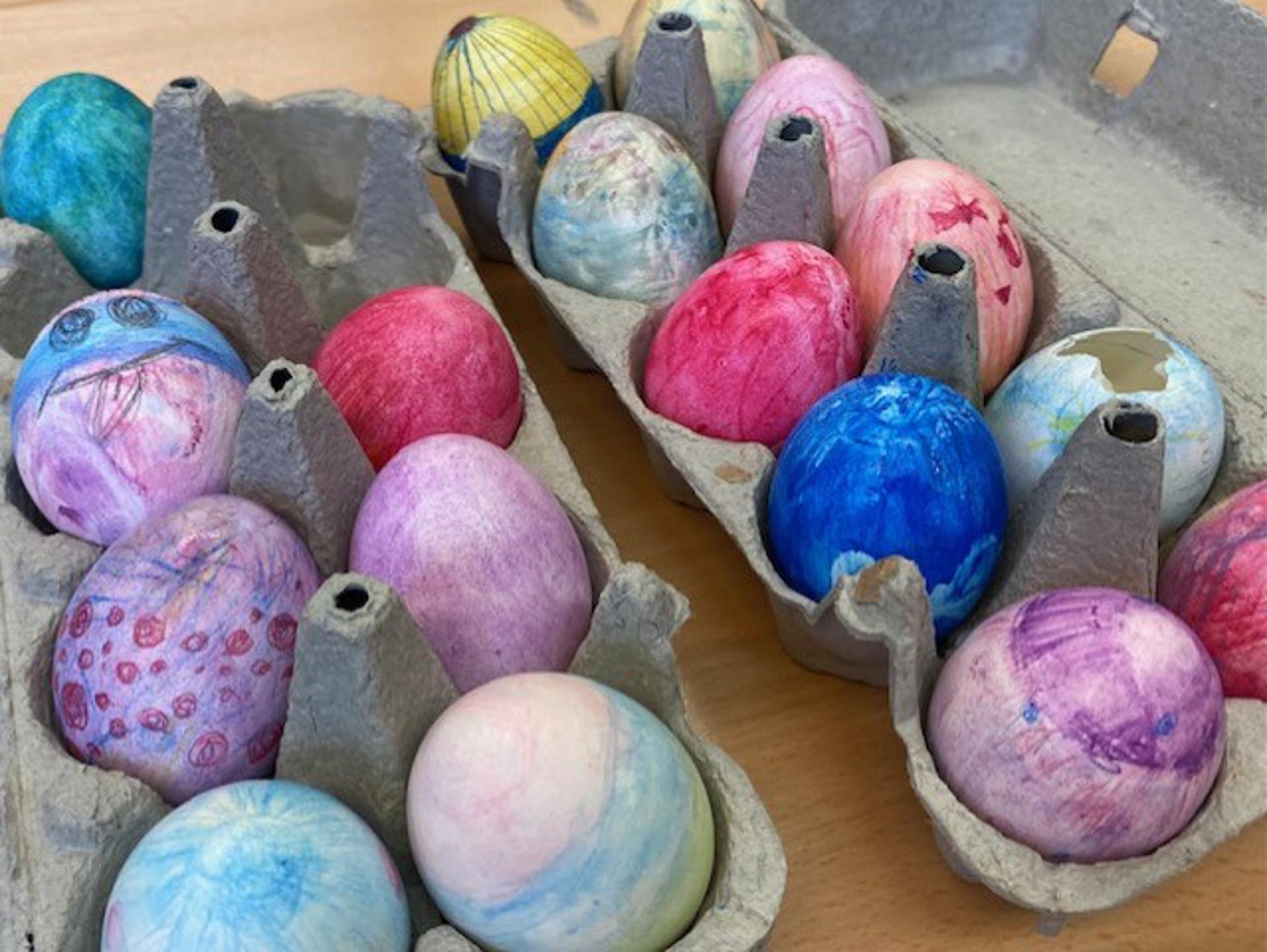 Am Donnerstag vor den Osterferien veranstaltete der Schülerrat einen Osteranlass rund ums Ei. Der Osterhase war wohl zu beschäftigt, um sich auch noch ums Wetter zu kümmern. So fand der Anlass mehrheitlich im Schulhaus anstatt draussen statt. Die stufengemischten Schülergruppen durchliefen verschiedene Posten, wie zum Beispiel Eiersuchen im Schulhaus, Eier färben oder auch Eier drehen. Der gut organisierte und abwechslungsreiche Nachmittag fand seinen Abschluss in einem Eitertütsch-Wettkampf. Anschliessend durften die SuS gut gelaunt in die verdienten Ferien.